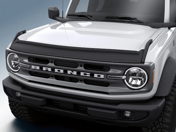 Deflect stones, road debris and bugs away from your truck with a hood protector from Ford. This easy to install low-profile, aerodynamic hood deflector has a smooth, smoke acrylic instantly upgrading the look of your Bronco.