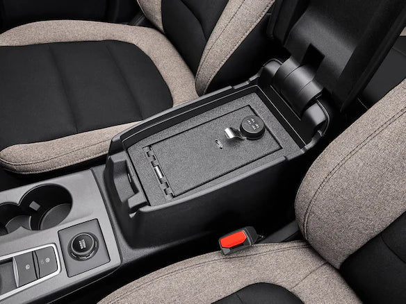 - Secures inside factory console Console Vault’s in-vehicle safes discreetly